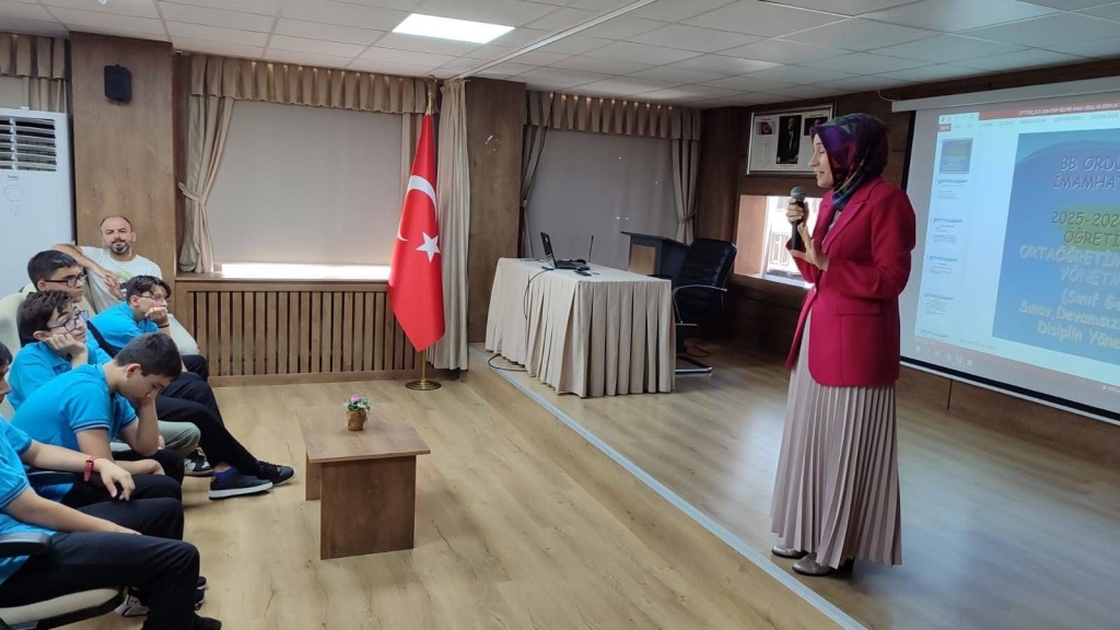 3. Gün: Okul müdür yardımcımız tarafından "Okul Kuralları,Sınıf Geçme Yönetmeliği, Ödül ve Disiplin Yönetmeliği konularında bilgilendirme yapılmıştır.